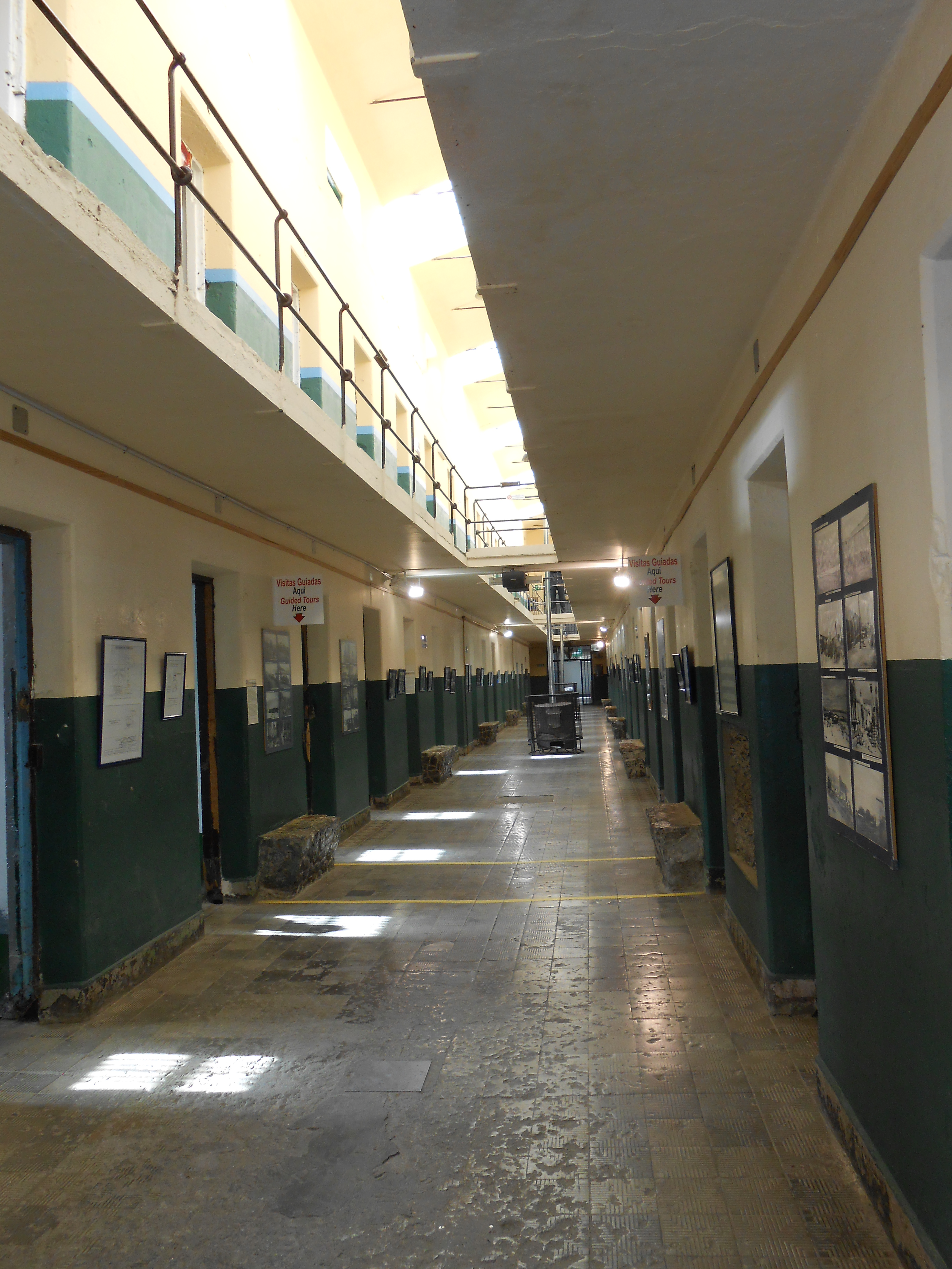 In the town centre, the surviving facilities show that by the 1920s and 30s, conditions had slowly improved. There is a large, empty swimming pool, complete with diving board; a school filled with wooden desks and (sometimes risqué) graffiti; and a town clock stuck permanently at 4pm. Overlooking the town square is the old hotel, with guest rooms, a restaurant, bar, billiards room, and a separate entrance at the back for workers, who were forbidden from using the front door. Conditions may have improved, but a strict hierarchy continued in the oficinas.